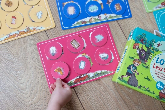 Op de borden vind je alledaagse voorwerpen en tips voor creatief hergebruik. De kleuren van de speelborden en fiches zijn afgestemd op het spel en hoeven niet overeen te komen met de kleuren van containers in afzonderlijke steden. Eén spel duurt ongeveer 10–20 minuten, dus perfect voor een kort potje tussendoor.
