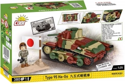Ontdek de iconische Japanse lichte tank TYPE 95 HA-GO in de verzameluitgave COBI Historical Collection. Het model op schaal 1:35 bestaat uit 380 onderdelen, biedt bewegende wielen, rupsbanden en koepel, hoogwaardige prints op onderdelen en minifiguur en bevat een figuur van een Japanse tankcommandant en een tweetalige naamplaat. De bouwset is compatibel met andere merken, geproduceerd in de EU en voldoet aan de veiligheidsnormen.
