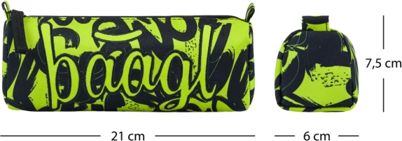 Stijlvol BAAGL studentenetui in een energieke lime-zwart combinatie, ideaal voor dagelijks gebruik. Biedt voldoende ruimte voor pennen en kleine spullen, is gemaakt van gerecycled materiaal en sluit de inhoud veilig af dankzij de kwaliteitsrits van YKK. Modern design met graffiti-elementen en een stevige afwerking garanderen een lange levensduur, ook bij frequent gebruik.