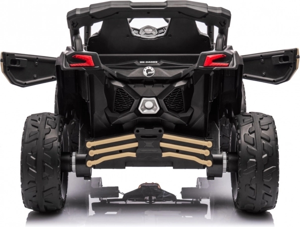 Robuuste elektrische buggy voor kinderen met 24 V voeding en 800 W vermogen, voorzien van 4x4-aandrijving, zachte EVA-banden en een comfortabel zitje met vijfpuntsgordel. Dankzij de 2,4 GHz afstandsbediening houden ouders volledige controle over de rit. Krachtige motoren 4× 24 V/200 W, soepel wegrijden, LED-verlichting en een multimediapaneel met USB/MP3 garanderen een veilige en leuke rit op gras, asfalt en klinkers.
