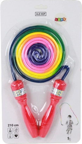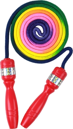 We bieden graag een bijzonder springtouw in regenboogkleuren met rode handgrepen aan. Het springtouw behoort tot het eenvoudigste speelgoed, maar is al decennialang populair en maakt zowel kinderen als ouders blij.
