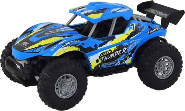 Ontdek het plezier off‑road met deze robuuste RC‑auto op schaal 1:16. Dankzij de grote rubberen banden, snelheid tot 20 km/u en bereik van de controller tot 25 m rijdt hij soepel over diverse ondergronden. Eenvoudige bediening, een ergonomische controller en een oplaadbare Li‑ion accu zorgen voor urenlang actieplezier.