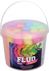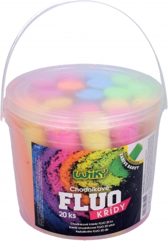 - De set bevat 20 stuks fluorescerend krijt in een praktische emmer.