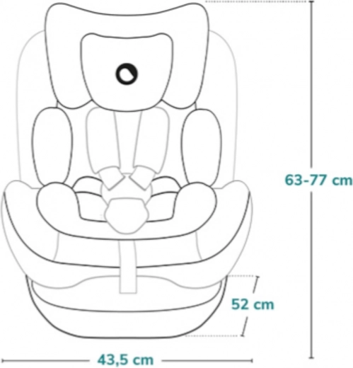 Eenvoudige installatie en dagelijks comfort – montage met ISOFIX en Top Tether met gekleurde indicatoren voor correcte bevestiging. De 360° EasyTurn draaibasis ontlast de rug van de ouder en vergemakkelijkt het vastgespen. 4 hellingsstanden in beide rijrichtingen en geïntegreerde hoogteverstelling van de hoofdsteun met gordels zorgen voor een ideale positie om te slapen en wakker te zijn.