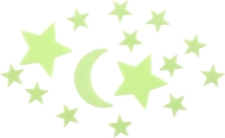 Verander de kinderkamer in een betoverend heelal. De set lichtgevende sterren en de maan “laden” zich overdag op met licht en creëren na het uitdoen van het licht een prettige gedempte gloed die kinderen helpt rustig in slaap te vallen.