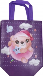 Praktische en stijlvolle cadeauzak voor kinderen van duurzaam non-woven textiel in compact formaat S. Ideaal voor kleine cadeaus en feestjes. Biedt stevige uitvoering, herbruikbaarheid en vier vrolijke motieven die elk kind zullen blij maken.