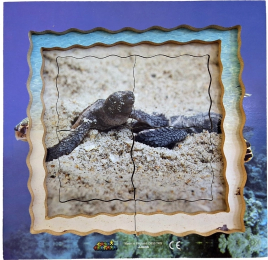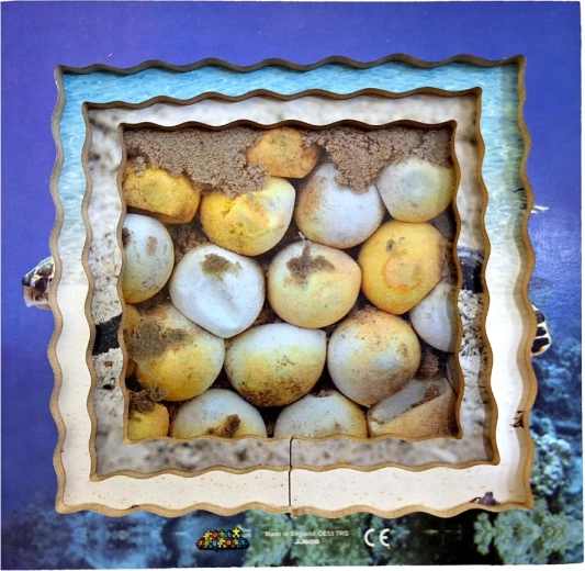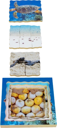 Geniet van een unieke ervaring bij het leggen van de puzzel die de werkelijke fasen van de ontwikkeling van een schildpad laat zien. Elke laag bevat echte foto’s uit verschillende stadia van de cyclus, van eieren tot en met de volwassen schildpad.