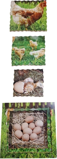De puzzel biedt de mogelijkheid om de levenscyclus van de kip te leren kennen en te begrijpen aan de hand van echte foto’s en een gelaagde opbouw.