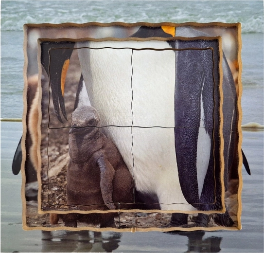 Leerzaam en leuk: Deze houten laagjespuzzel bevat realistische foto’s die kinderen visueel kennis laten maken met de afzonderlijke levensfasen van de pinguïn.
