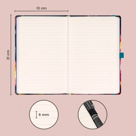 De gelijnde pagina’s op geel papier bieden een prettig contrast en comfortabele leesbaarheid. Het compacte formaat van 13 × 21 cm past perfect in handtas of rugzak en biedt toch voldoende ruimte voor 172 pagina’s aan notities, taken en creatieve ideeën.