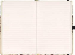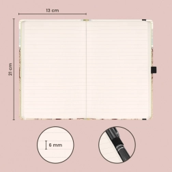 Elegante gelinieerde notebook met harde kaft en praktische elastische sluiting. Voorzien van een penlus, een binnenvak voor kleinigheden en 172 dotted pagina’s op geel papier voor je ideeën, dagboeknotities en werkmemo’s.