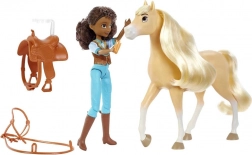 Ontdek de wereld van vriendschap, moed en avontuur uit de serie Spirit: Ongetemd van DreamWorks. De set met pop Pru (ca. 17,5 cm) en haar paard Supertalent (ca. 20 cm) biedt een realistische rijervaring, bewegende gewrichten en een stylebare manen voor uren creatief spel. Inclusief zadel, hoofdstel, kam en een wortellekkernij voor het paard.