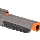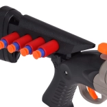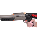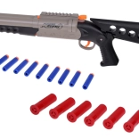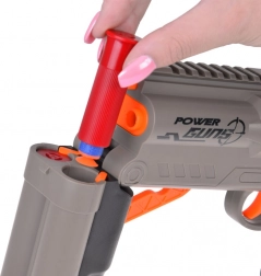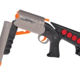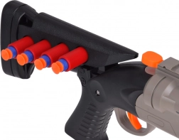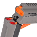 In de verpakking zitten 6 hulzen en 10 foam pijltjes met zuignap, die eenvoudig in de hulzen geschoven worden voor snelle “munitie”-voorbereiding. Het wapen klapt halverwege open voor comfortabel laden, de pompmechaniek zorgt voor een soepele werking en de stabiele kolf helpt bij nauwkeurig mikken.