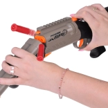 Deze massieve kinder-dubbeldekker is ideaal voor actievolle spellen binnen en buiten. Uitblinker in hoogwaardige kunststof afwerking, oranje veiligheidsaccenten en realistische details, inclusief uitwerpen van lege hulzen bij het herladen. Dankzij de dubbele loop kun je met een lichte trek één pijltje of met een stevigere trek beide tegelijk afvuren.
