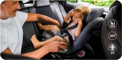 De mogelijkheid om 360° te draaien biedt comfortabel toegang tot uw kind, ongeacht de richting waarin het zit. Dit vergemakkelijkt het plaatsen van het kind in het stoeltje en het eruit halen.