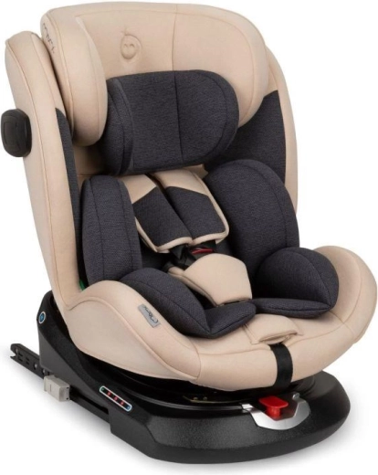 Een unieke functionaliteit van het autostoeltje is de draaibare basis, die eenvoudig instellen zowel tegen als met de rijrichting mogelijk maakt. De stoel is uitgerust met een ISOFIX systeem met indicator voor correcte montage en een Tether band voor nog meer veiligheid.