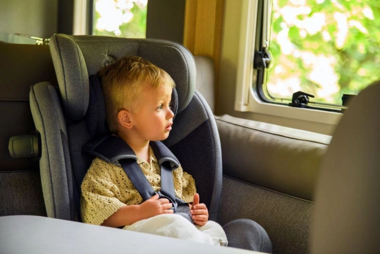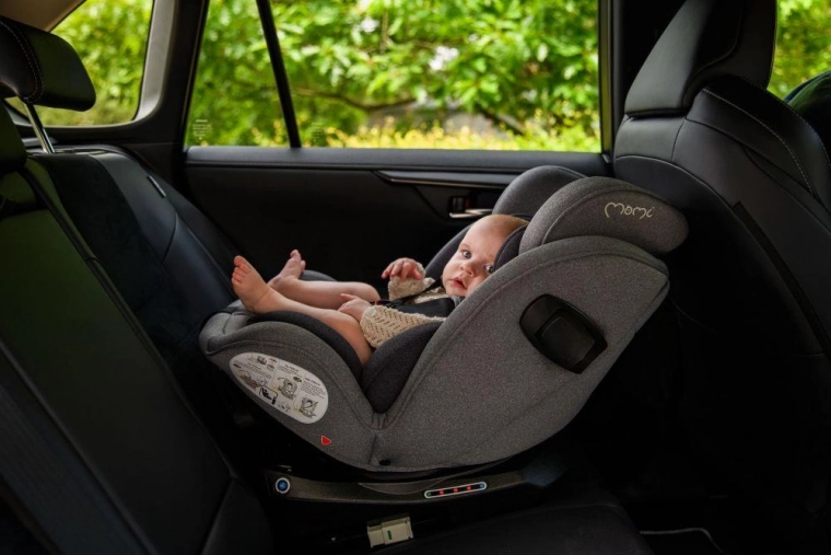 Veilige en comfortabele autostoel MoMi met een draaibare basis voor kinderen van 40 tot 150 cm. Voldoet aan de nieuwste i-Size normen voor reizen.