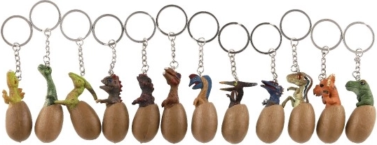 Elke dinosaurus sleutelhanger is uniek dankzij verschillende designs en kleuruitvoeringen.