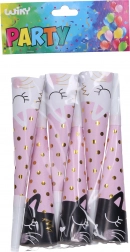 Tover een glimlach op ieders gezicht met onze feesttoeters met kattenmotief. Ze zijn perfect voor vrolijke momenten op verjaardagsfeestjes, kinderfeestjes of andere speciale gelegenheden. De set bevat zes verschillende toeters die elke viering een unieke sfeer geven.
