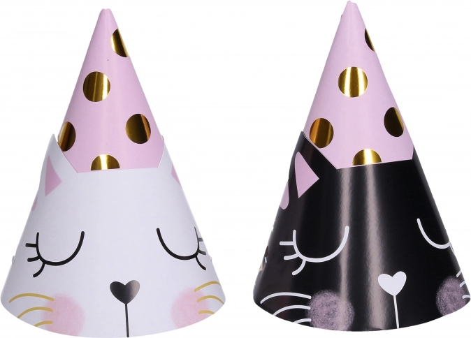 Schaf stijlvolle feesthoedjes met een kattenmotief aan en maak je feestje onvergetelijk. De verpakking bevat 6 stuks van deze unieke hoedjes met een hoogte van 15 cm.