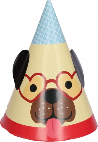 Breng de verjaardagstafel tot leven met speelse hoedjes met een hondendessin. Dankzij het praktische formaat van 15 cm zitten ze comfortabel en passen ze perfect bij andere feestdecoraties. De set van 6 stuks is geschikt voor zowel kleine als grotere feestjes.