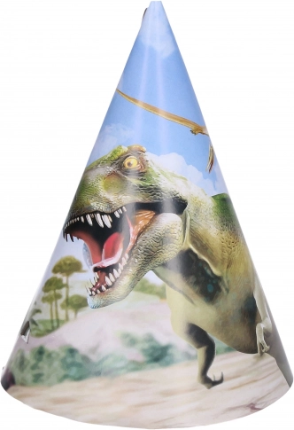 Vrolijk een kinderfeestje op met stijlvolle partyhoedjes met DINO-motief. Praktische set van 6 stuks met een hoogte van 15 cm, perfect voor verjaardagen, themafeestjes en schoolactiviteiten.