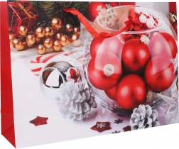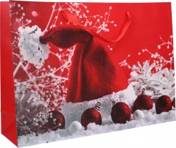 Deze ruime kerstcadeautas van stevig papier is een uitstekende keuze voor een elegante verpakking van cadeaus. Dankzij de verbrede bodem en zijkanten is er gemakkelijk plaats voor grotere of volumineuzere items, terwijl de stevige hengsels zorgen voor comfortabel en veilig dragen.