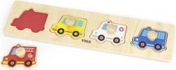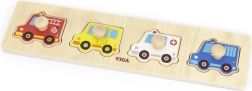 Deze hoogwaardige houten inlegpuzzel met vier voertuigen (brandweerwagen, taxi, ambulance en politiewagen) is een uitstekende keuze voor de eerste logische spelletjes. De stukjes met praktische knopjes maken het hanteren eenvoudig en moedigen kinderen aan om steeds opnieuw te puzzelen en te ontdekken.
