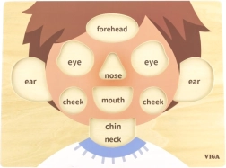 Kinderen leren spelenderwijs ogen, neus, mond, oren en voorhoofd herkennen – en verankeren deze begrippen in de dagelijkse communicatie.