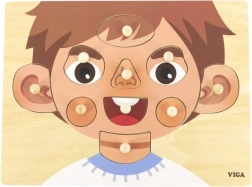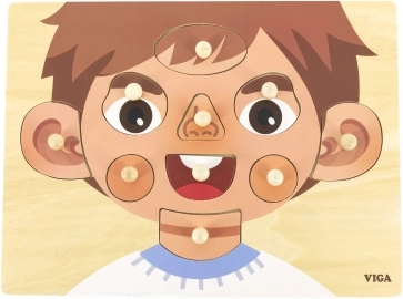 Deze houten inlegpuzzel met een gezichtsmotief is een ideale hulp bij de eerste ontdekkingen. Dankzij de stevige houten stukjes met knopjes leren kinderen gemakkelijk woorden als ogen, neus, mond en oren, terwijl ze spelenderwijs hun motorische vaardigheden trainen.