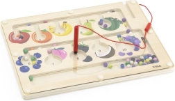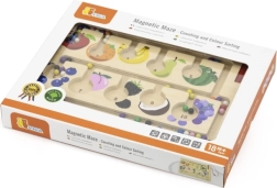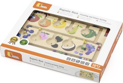 Dit hoogwaardige houten magnetische doolhof is een geweldige educatieve speelset voor de ontwikkeling van kinderhandigheid. Kinderen verplaatsen met een magnetische pen gekleurde balletjes langs gemarkeerde paden, sorteren ze op kleur en koppelen ze aan afbeeldingen van fruit of cijfers. Het spel stimuleert logisch denken, concentratie en oog-handcoördinatie.