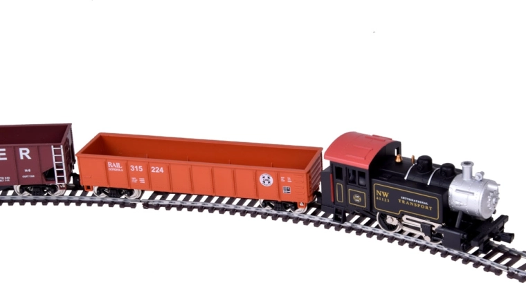 Deze elektrische modelbaan in H0 (1:87) bootst een echte stoomlocomotief natuurgetrouw na, inclusief gedetailleerd onderstel en realistische opschriften. Stabiliteit in bochten wordt gewaarborgd door de verzwaarde locomotief en de kwalitatieve loop. Twee goederenwagens met draaibare assen nemen soepel de bochten en maken het mogelijk kleine ladingen te vervoeren.