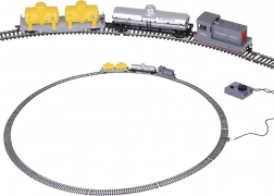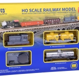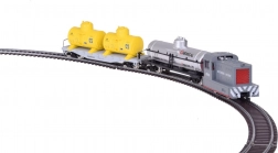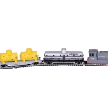 - Complete inhoud: SOUTHERN PACIFIC-locomotief, platte wagon met twee gele tanken, zilveren chemische tank, bochten 30° (11 stuks), voedingsbocht, voeding en verbindingskabel.