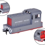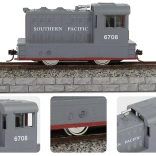 Dit elektrische model van een goederentrein bootst een echte locomotief natuurgetrouw na, inclusief SOUTHERN PACIFIC-bedrukking en fijn gedetailleerde elementen. De locomotief is extra verzwaard voor betere tractie en stabiliteit in bochten, de wagons hebben draaibare assen voor soepel bochtenwerk en koppelen gaat eenvoudig dankzij haken/connectoren.