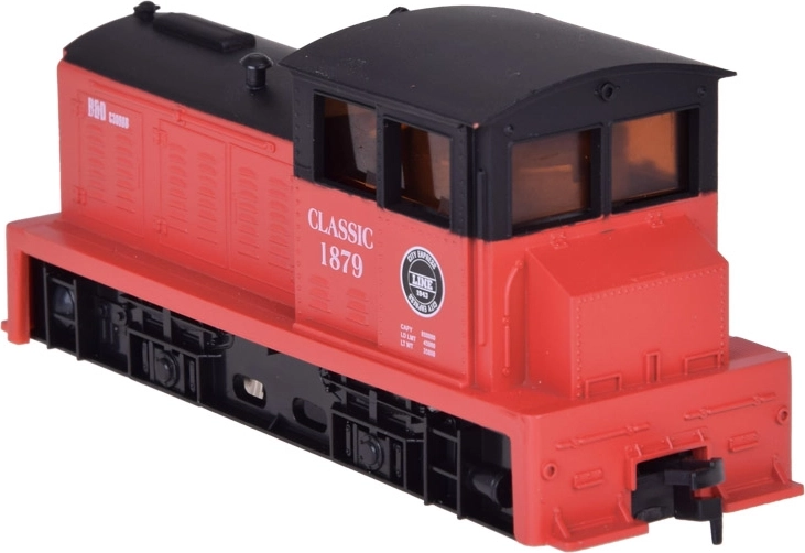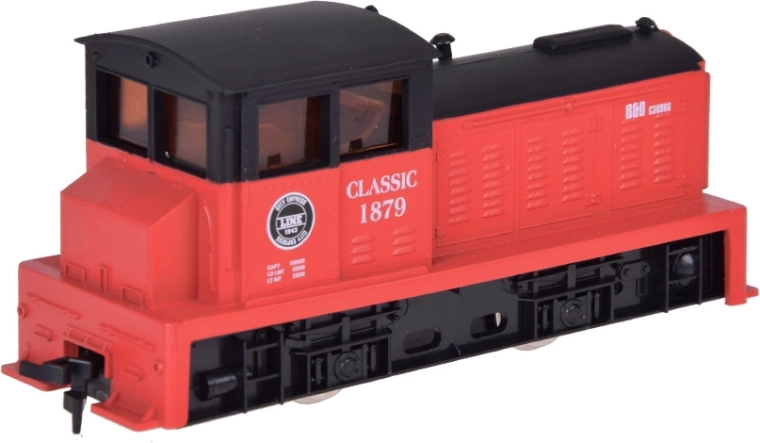 De rode locomotief met zwart dak biedt precieze afwerking, betrouwbare loop en extra ballast voor stabiele ritten in bochten.