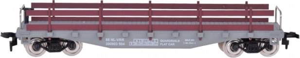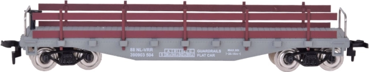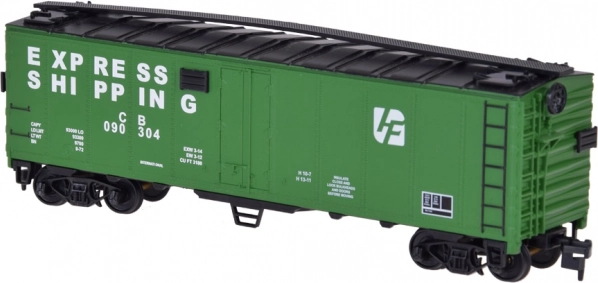 De set bevat een gesloten wagen “Express Shipping” en een open platte wagen met leuning – ideaal voor het creëren van realistische goederenscènes.