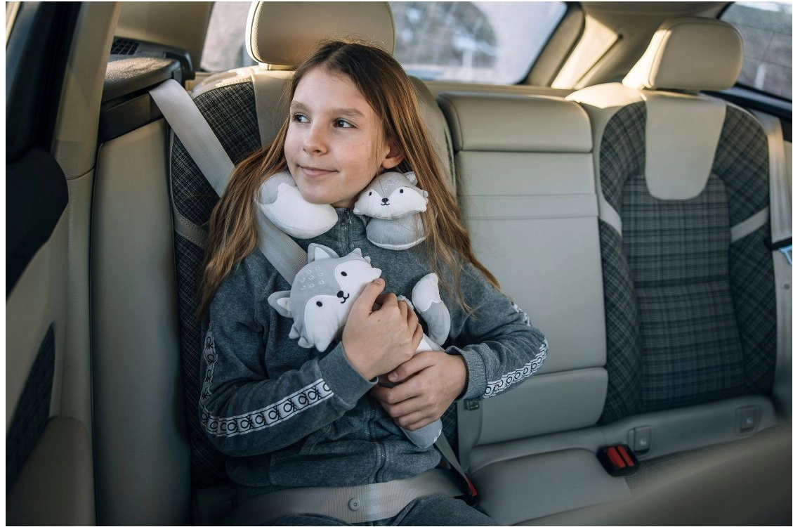 De zitting met vossenthema biedt comfort en ondersteuning voor kinderen tijdens het autorijden.