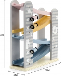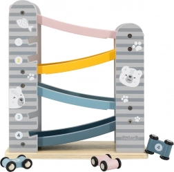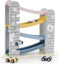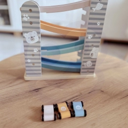 Racebaan is een geweldig speeltje voor elke kleine racefan. Dankzij het unieke design en de duurzaamheid is het een ideale toevoeging aan elke kinderkamer. De afgeronde randen zorgen voor veiligheid en de pastelkleuren spreken elk kind aan.