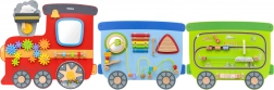 Houten wand-activiteitenbord in de vorm van een treintje van VIGA biedt kinderen uren leerzaam speelplezier. Drie gekoppelde secties combineren tandwielen, een spiegeltje, een xylofoon, een kralenlabyrint en een schuifbaan. Gemaakt van hoogwaardig hout en gelakt met niet-giftige verven, geschikt vanaf 3 jaar, ondersteunt fijne motoriek, coördinatie en creativiteit in de geest van Montessori.