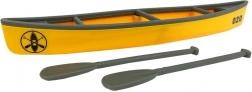 De set bevat een geel-grijze kajak en twee peddels. Je bevestigt hem eenvoudig op het autodak en vertrekt op watermissies in de kinderlijke verbeelding.