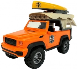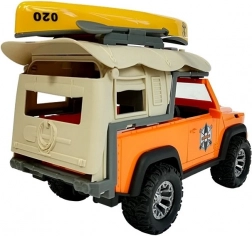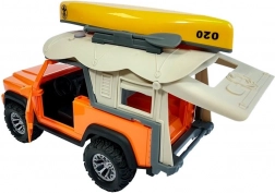 Trek op denkbeeldige tochten de natuur in met de oranje JEEP campingauto en de stijlvolle geel-grijze kajak. Dankzij licht en geluid voelt het rijden realistisch, openende deuren en achterklep nodigen uit om het interieur te verkennen en rubberen banden kunnen overweg met diverse oppervlakken in de kinderkamer.
