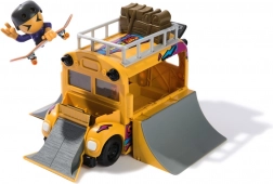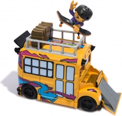 De bus verandert in een volledig uitgerust skatepark met drie ramps. Inclusief echt functionerende banden en een afneembare skateboarder poppetje. Oefenen van verschillende tricks en combinaties is mogelijk tijdens het spelen.