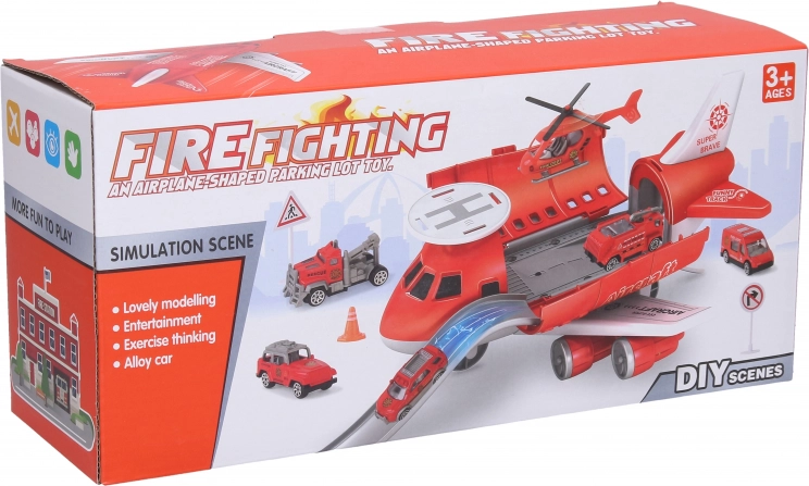 Het brandweervliegtuigstation biedt geweldig vermaak voor kleine brandweermannen! Het bevat een vliegtuigstation, 4 kleine auto's, en een helikopter met vrije wielen.