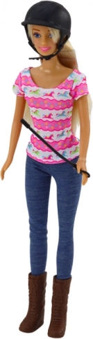 Elegant geklede pop in een ruiteroutfit met helm en rijlaarzen. Beweegbare gewrichten voor meer variatie in speelscènes.