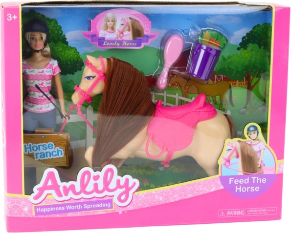 De Anlily Jockey speelset combineert elegantie met liefde voor dieren. De Jockey-pop draagt een ruiteroutfit met helm en laarzen, terwijl haar beweegbare gewrichten verschillende scènes mogelijk maken. Ook inbegrepen is een prachtig paard met realistische details, met lange manen en staart die uitnodigen tot kammen.