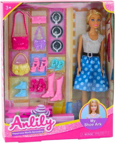 Pop Anlily is een elegante pop die betovert met haar uiterlijk en rijke details. Ze is uitgerust met een stijlvolle zilveren top, een blauwe rok met witte stippen en wordt aangevuld met een zwarte riem en schoenen. Deze combinatie stelt kinderen in staat te experimenteren en unieke modieuze stijlen te creëren.