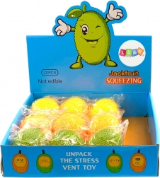 Antistress knijpballetje in de vorm van een jackfruitvrucht van zacht rubber biedt directe ontspanning en plezier thuis, op school en op kantoor. Dankzij het zachte en uitrekbare materiaal voelt het prettig aan om in te knijpen, het realistische uiterlijk spreekt zowel kinderen als volwassenen aan en de compacte afmetingen van 9 × 6 cm maken het makkelijk mee te nemen. De veiligheid wordt gegarandeerd door CE-certificering en norm EN71. Verkocht per stuk, kleur wordt willekeurig gekozen.
