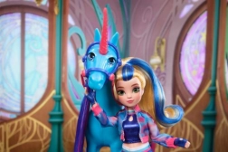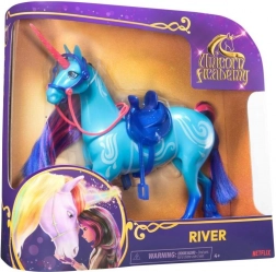 Maak kennis met eenhoorn River van de Eenhoornacademie, geïnspireerd op de bestseller-boekenreeks. Deze eenhoorn pronkt met prachtige details zoals parelmoerkleurige symbolen van de magie van het waterelement, een majestueuze glinsterende hoorn en een kleurrijke manen en staart.