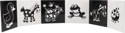 Het contrasterende leporello met boerderijdieren is het ideale eerste boekje voor baby’s vanaf 0 maanden. Eenvoudige, opvallende motieven (hond, kat, geit, biggetje e.a.) in hoog zwart-witcontrast trekken van nature de aandacht en helpen bij het trainen van concentratie en visueel volgen.