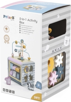 De houten activiteitenkubus 5-in-1 POLARB is een doordacht educatief centrum voor kinderen dat plezier met leren combineert. Elke zijde biedt een andere activiteit – van het schuiven met kralen tot tandwielen – en ondersteunt zo de natuurlijke ontwikkeling van vaardigheden. Hoogwaardig hout en veilige verven zorgen voor duurzaamheid en veilig spel.